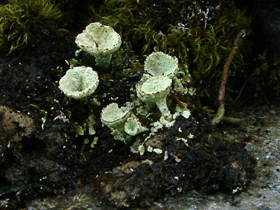 A squamulose-fruticose species known as the "mealy pixie-cup".