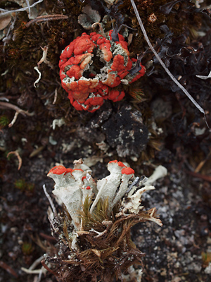 with red apothecia.