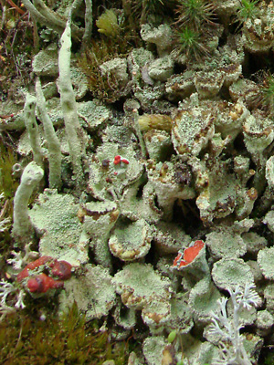 A squamulose-fruticose species known as the "greater sulphur cup".