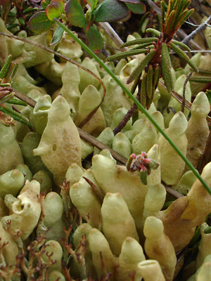 A fruticose species known as the "arctic finger lichen".