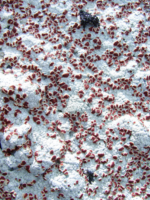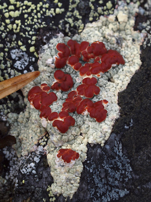 1. May 30, 2012. Close-up showing the deep red apothecia.