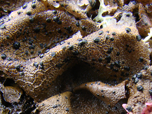 A foliose species known as " common freckle pelt lichen", "green dog lichen",