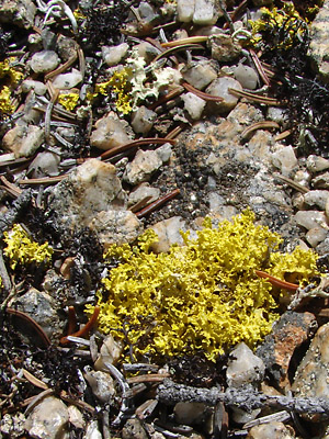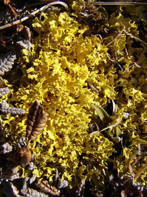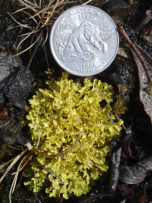 An arctic-alpine, foliose-fruticose lichen known as the "goldtwist"