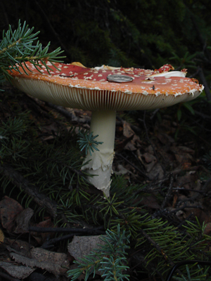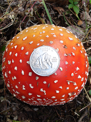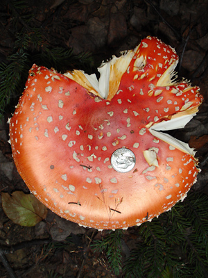 ![]() 8. August 2, 2011. Another partially expanded specimen. White material is the partial remains of the universal veil. |