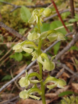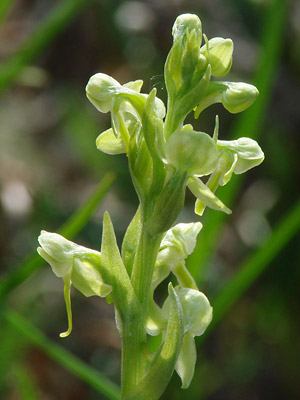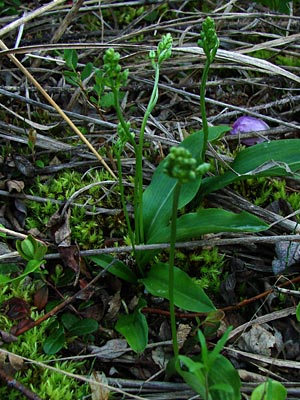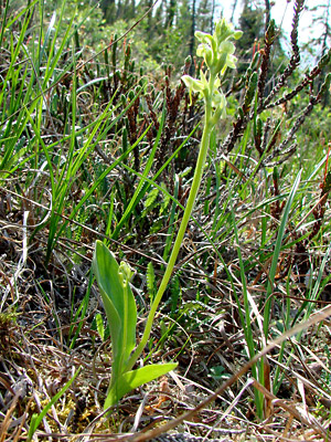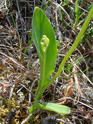 Known as "one-leaved rein orchid", "one-leaved bog orchid"