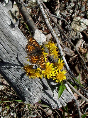 cluster with two species of butterflies.