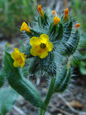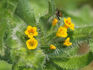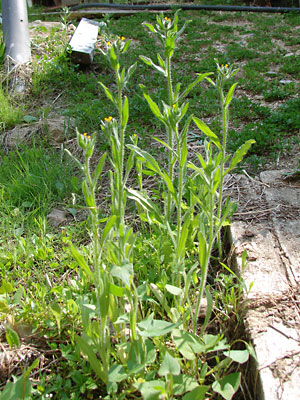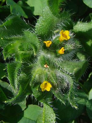 An introduced weed with hairy stems, leaves and sepals. It is known