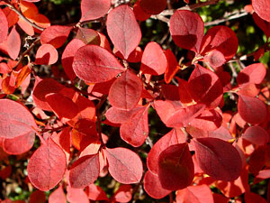 ![]() 11. Early September. Shriveled berries on a shrub with red fall leaves. The berries shrivel after a frost. |