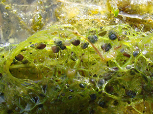 ![]() 4. Mid-July Small bladders on finely divided leaves. They fill with air to lift the stem out of the water to bloom. The bladders are also used to capture microscopic animals. |