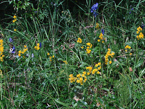 13. Early July. A few plants with Solidago