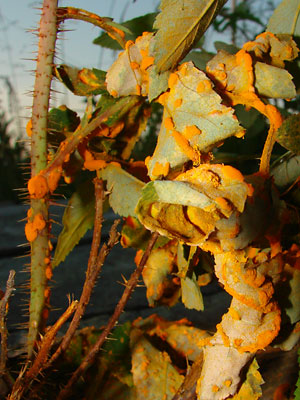 17. Late June. Rose rust infestation caused by