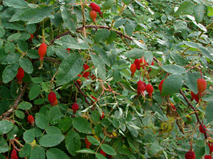 12. A bush with many hips of varying