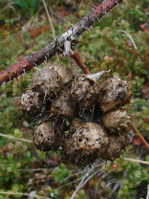 20. Late June. Spiny rose galls caused by a