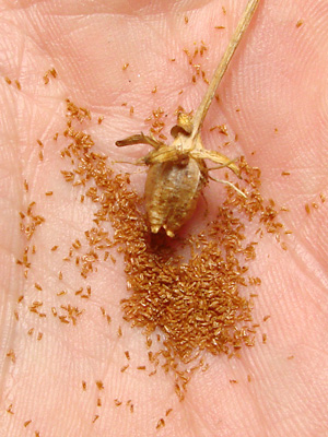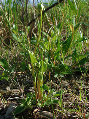 a multi-stemmed species with long, thin stems, each having a single, sessile