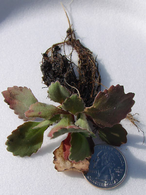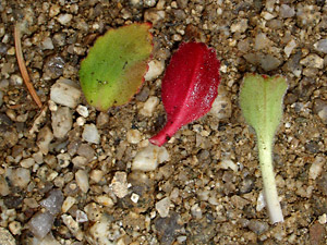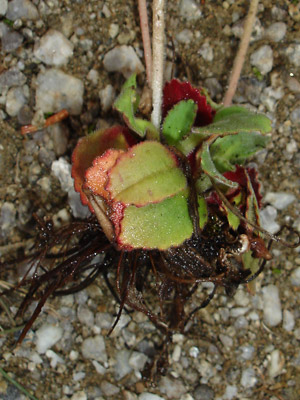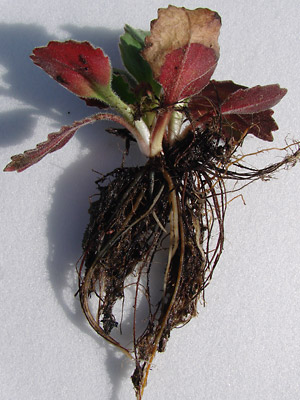 brown roots. Note the one red leaf with the