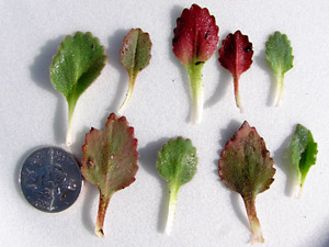 stems. The tops of the leaves are green and red,