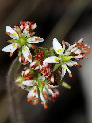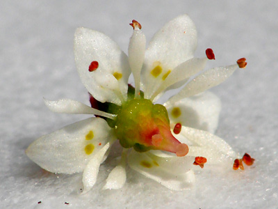 At the upper right is a blossom with a split pistil