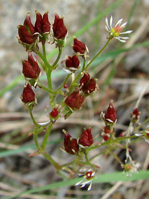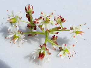 red-tipped bracts at branchings and the bases of.