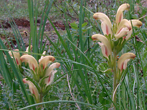 blossoms with red markings on the upper lips.
