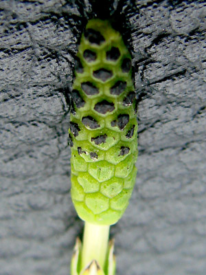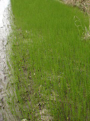 A species thriving in wet areas known as the "marsh horsetail".