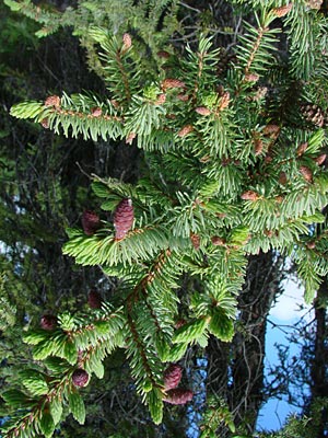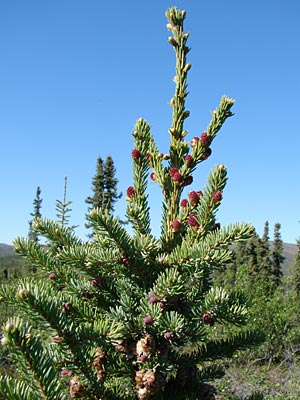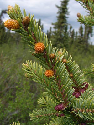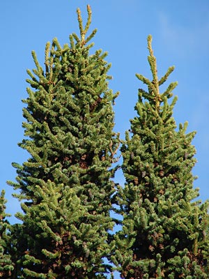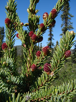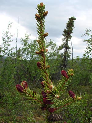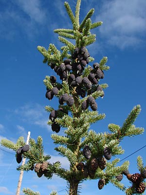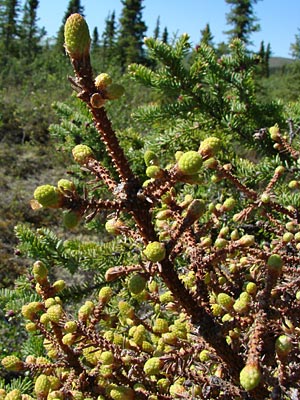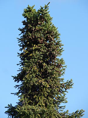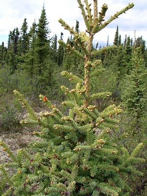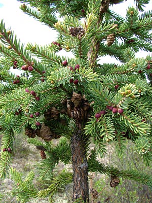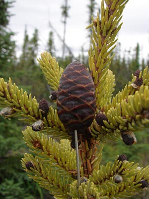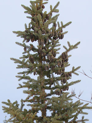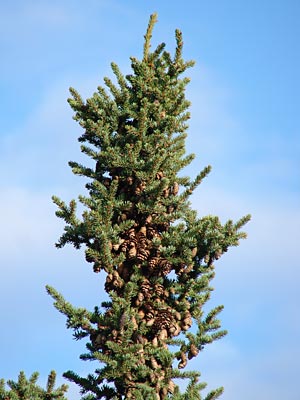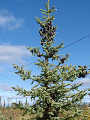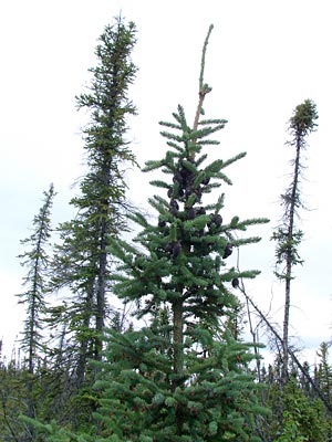4. Twin-topped black spruce with cones.