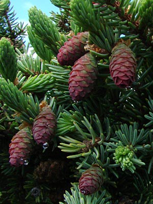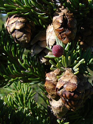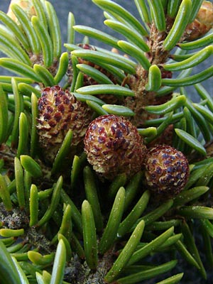 Dark mature cones are typical of this species.