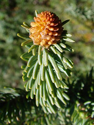 13. Female cones and leaf buds in mid-June.