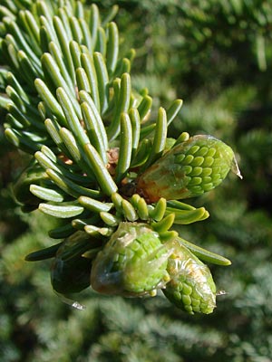 18. Female cones with dripping sap in late