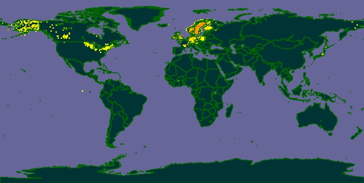 This site gives access to information on samples of species collected throughout the world. You will need to agree to some restrictions on the use of the data. Enter the name of the organism (genus species). This gives access to a map of the worldwide distribution of the species and the ability to download a kml file to be used on Google Earth which will show the locations where specimens have been collected. There is a limit to the amount of information which the kml file can provide and often for Alaskan specimens and even U.S. specimens the file is inadequate since preference is often given to specimens collected in Europe. For example: andromeda polifolia yields this occurrance overview map.